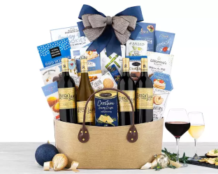 Four Brick Lane Winery fine wines and a complementary selection of sweet and savoury fare truly one of a kind.Features Cabernet, Chardonnay, Zinfandel and Merlot arrive with an assortment of fruit filled puff pastries, cranberry waffle cookies, Lindt milk chocolate truffles, rosemary crackers, smoked Gouda cheese spread, garlic crackers, French butter cookies, madeleine cakes, olives, chocolate hazelnut cookies and more .