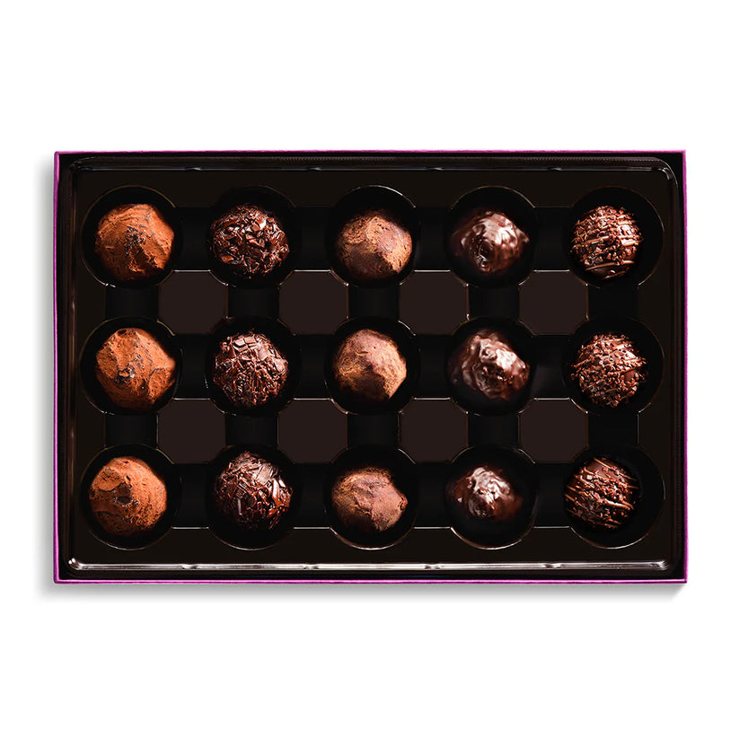 Discover the ultimate gift by Godiva for the dark chocolate connoisseur. Perfect for dinner parties and birthday celebrations this gift offers exquisite dark chocolate truffles in tantalizing flavours includes Draps Original, Chocolatey Yours, Signature Truffle Twist, Unexpected Blend, and Legendary Dark Chocolate Ganache. UD KOSHER